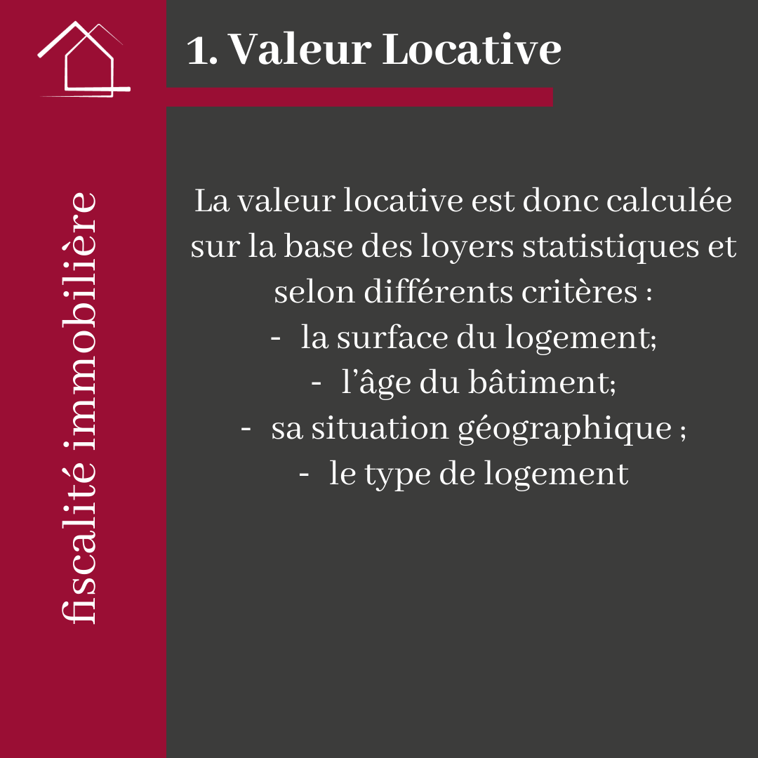 La valeur locative est donc calculée sur la base des loyers statistiques et selon différents critères :
