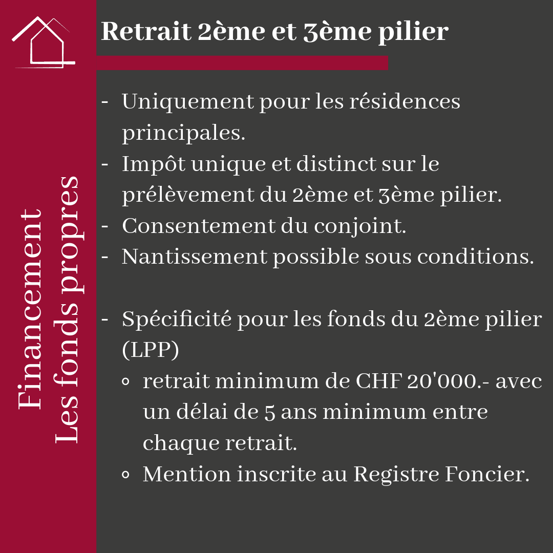 - Les fonds du 3ème pilier (prélèvement anticipé accepté uniquement pour l’acquisition d’une résidence principale)